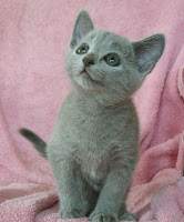 แมวชนิดนี้มีถิ่นกำเนิดอยู่ที่รัสเซีย แมวรัสเซียนบลูตัวแรกที่ถูกนำมาที่อังกฤษ เป็นของพระเจ้าซาร์องค์หนึ่งประทานให้แก่นักการเมืองชาวอังกฤษเป็นแมวขนาดกลาง-ใหญ่หูใหญ่ปลายแหลม นัยน์ตาสีเขียว ลำตัวยาวเรียว ขายาว ขนสั้นอ่อนนุ่มสีเทาน้ำเงินล้วนทั่วตัวปราศจากรอยด่างพร้อย เป็นแมวที่สุภาพเรียบร้อยแมวรัสเซี่ยนบลู หรือ แมวรัสเซียสีฟ้า (Russian Blue) เป็นแมวน่ารัก สุภาพเรียบร้อย เงียบ รักสะอาด ขี้เล่น ทว่าขี้อายเล็กน้อย ฉลาดหลักแหลม เช่น สามารถเปิดประตูบ้านได้ด้วยตนเอง เข้ากันได้ดีกับเด็กๆ และสัตว์อื่นๆ อีกทั้งยังมีลักษณะเด่นที่ไม่เหมือนใคร ขนของมันสั้นและหนาแน่น ขนสีฟ้าซึ่งก็คือสีเทาอ่อนเป็นลักษณะเด่นที่แมวพันธุ์นี้มี และยังมีเพียงสีนี้สีเดียวเท่านั้น แต่ด้วยความที่ รัสเซียน บลู เป็นแมวที่มีขนสองชั้น ดูเผิน ๆ คล้ายขนของตัวบีเวอร์ ในระยะแรกจึงเป็นที่รู้จักกันในฐานะแมวทูต หรือ Foreign Blue